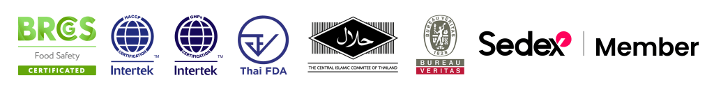 We hold a BRCGS Grade A certification, reflecting our commitment to the highest standards of food safety and quality. We take pride in our comprehensive documentation and rigorous food safety measures, ensuring that every step – from sourcing ingredients to delivering the final product is meticulously monitored. BRCGS (British Retail Consortium Global Standard) is a globally recognized, GFSI-benchmarked food safety standard applicable to food manufacturers and their suppliers. In addition, we are a member of Sedex, which reflects our commitment to responsible business practices and ethical supply chains. All products are manufactured in strict compliance with GHP, HACCP, Halal, and Thai FDA guidelines. We have been audited by Intertek for GHP, HACCP, and BRCGS compliance, and our facility is also registered with the U.S. FDA.