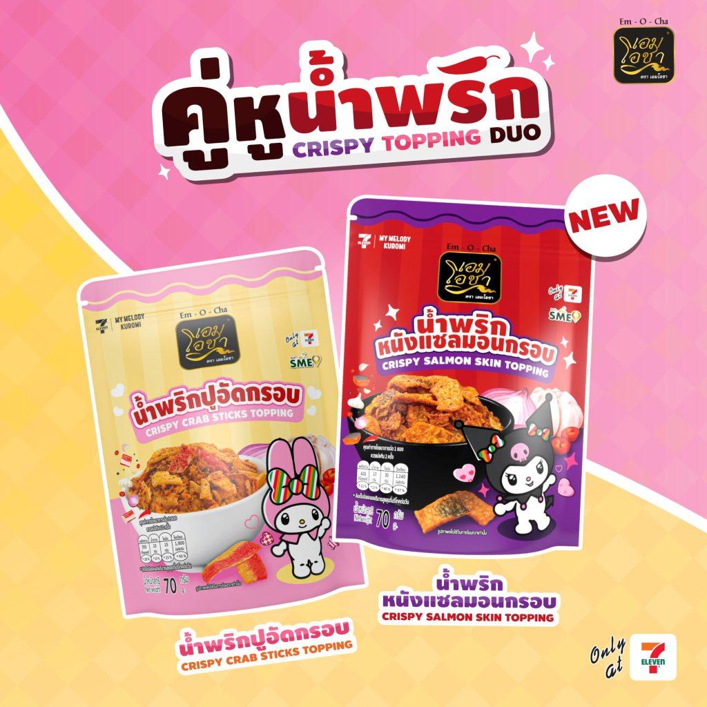 We’re happy to introduce our Kuromi licensing packaging project – now joined by My Melody as part of this collaboration. Our Kuromi-inspired Crispy Salmon Skin Chili Topping is made with real salmon skin – golden, crunchy, and blended with savory chili paste to deliver a bold and satisfying flavor. Alongside it, the My Melody-inspired Crispy Crab Stick Topping offers a light, crispy bite with a gently savory taste. Perfect for rice, noodles, salads, or as a topping for your favorite dishes. This project brought together creative packaging and product development, and our team worked closely together to bring it to life. We’re excited to see Kuromi’s bold personality paired with My Melody’s soft charm, adding a playful touch to everyday meals. A special thank you to 7-Eleven Thailand for making this project possible.